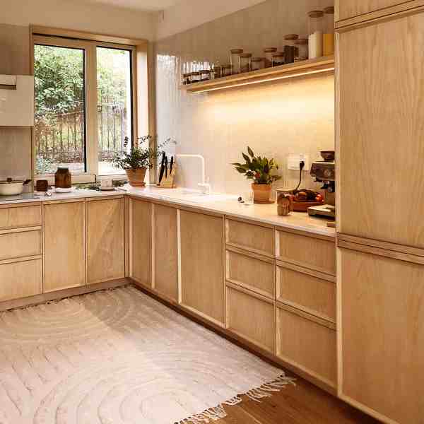 Pentru că atelierul nostru este specializat în lucrul cu lemn masiv, evităm comenzile cu fronturi de uși și sertare din PAL melaminat sau MDF vopsit, însă putem combina soluții în care carcasele corpurilor de mobilier sunt din placaj de mesteacăn, molid triplustrat sau PAL melaminat.